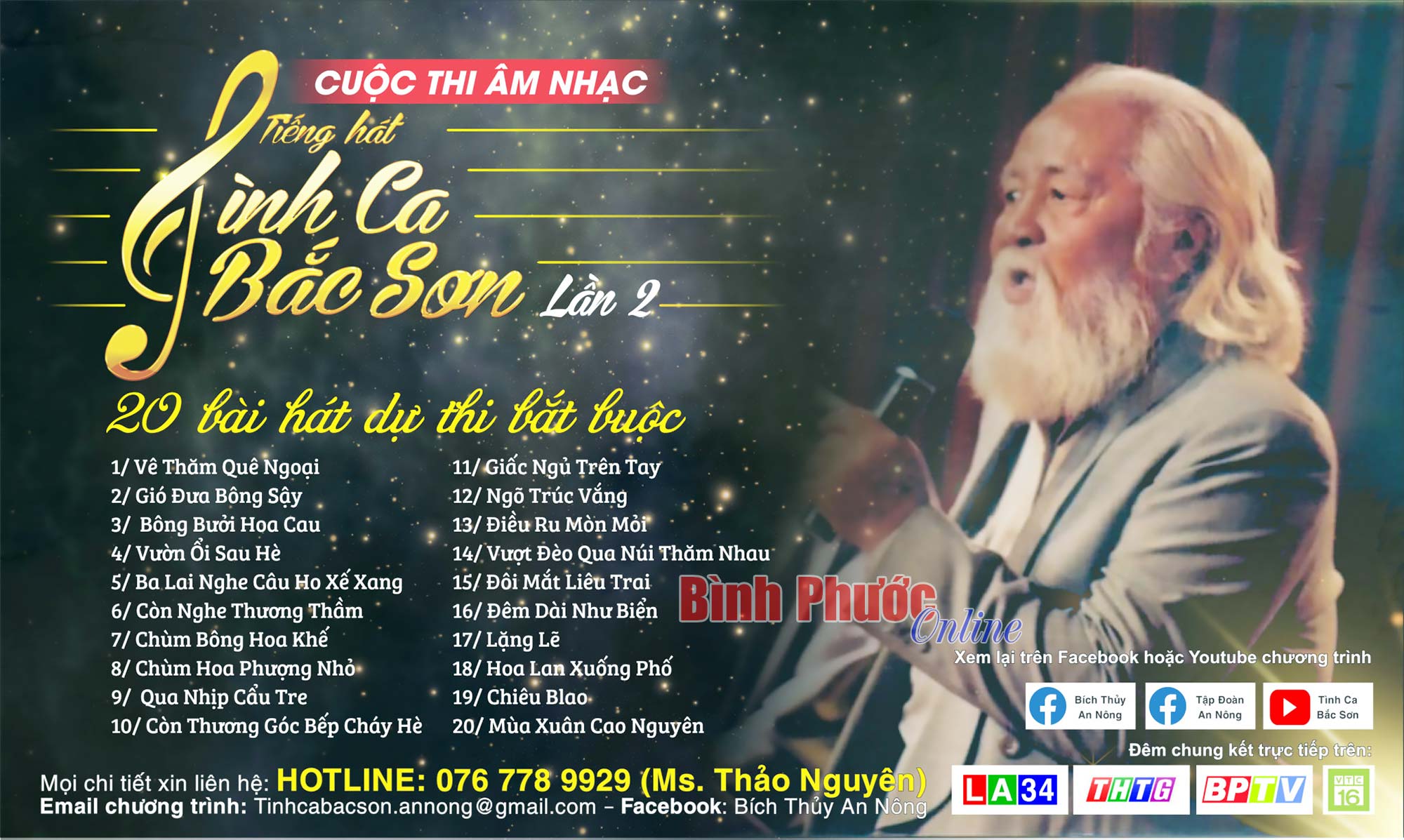 Đêm chung kết cuộc thi sẽ được ghi hình và phát sóng trên Đài Phát thanh - Truyền hình và Báo Bình Phước (BPTV), kênh VTC16, Đài Phát thanh - Truyền hình Long An và Đài Phát thanh - Truyền hình Tiền Giang.