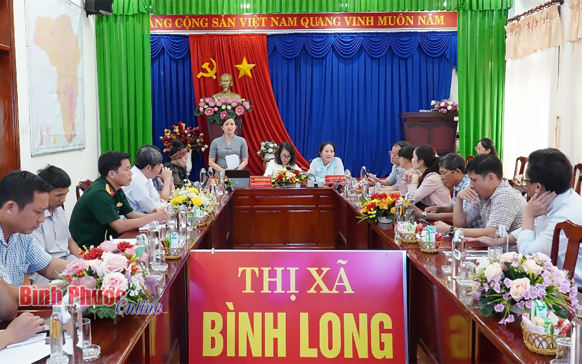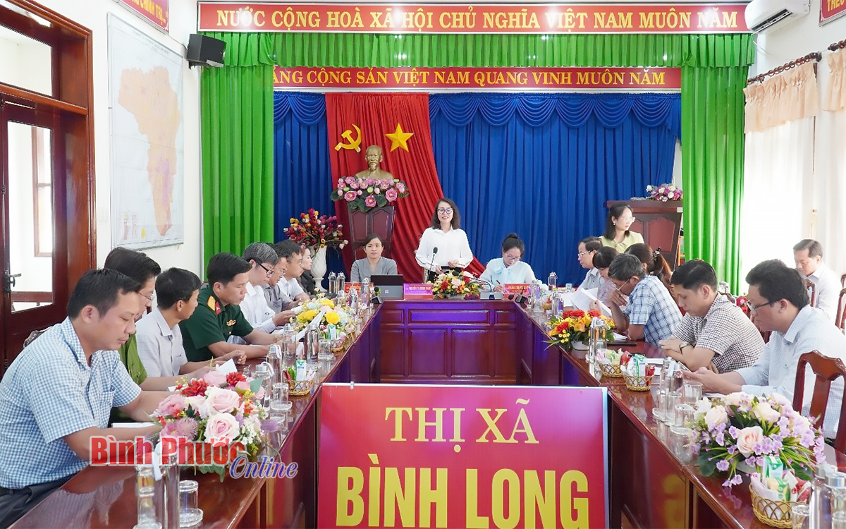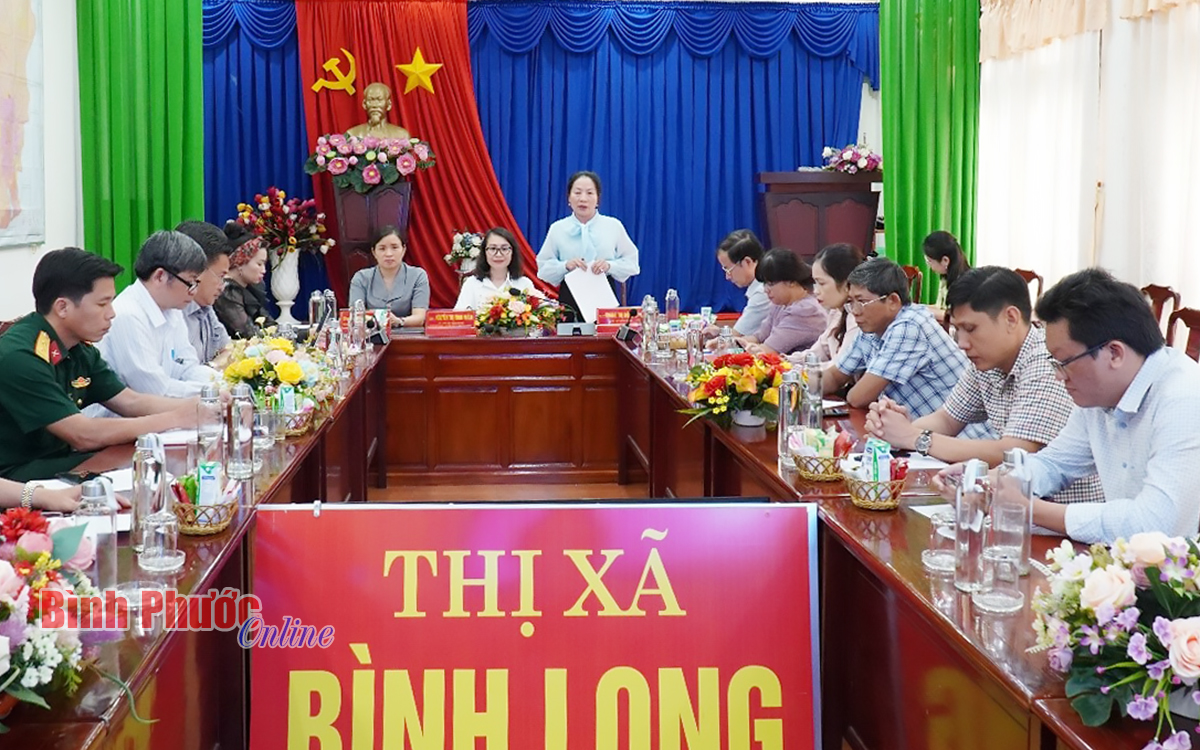 Phó Bí thư Thị ủy, Chủ tịch UBND thị xã Bình Long Hoàng Thị Hồng Vân phát biểu tại buổi làm việc