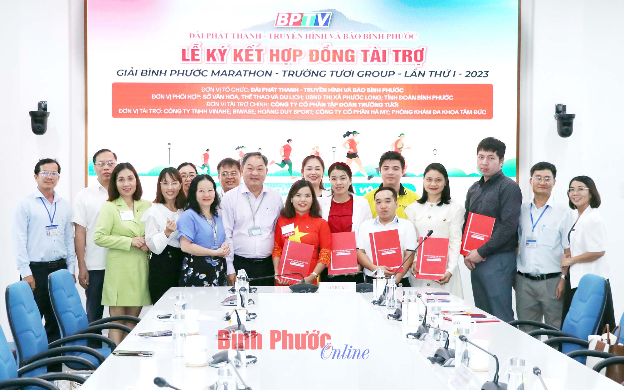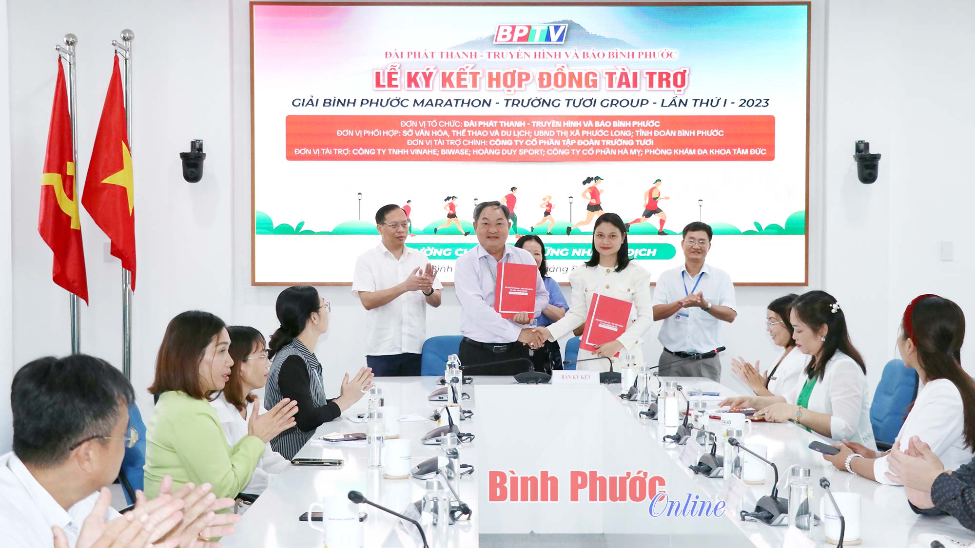 BPTV ký kết với đơn vị tài trợ cho giải Bình Phước marathon - Trường Tươi Group lần thứ I, năm 2023