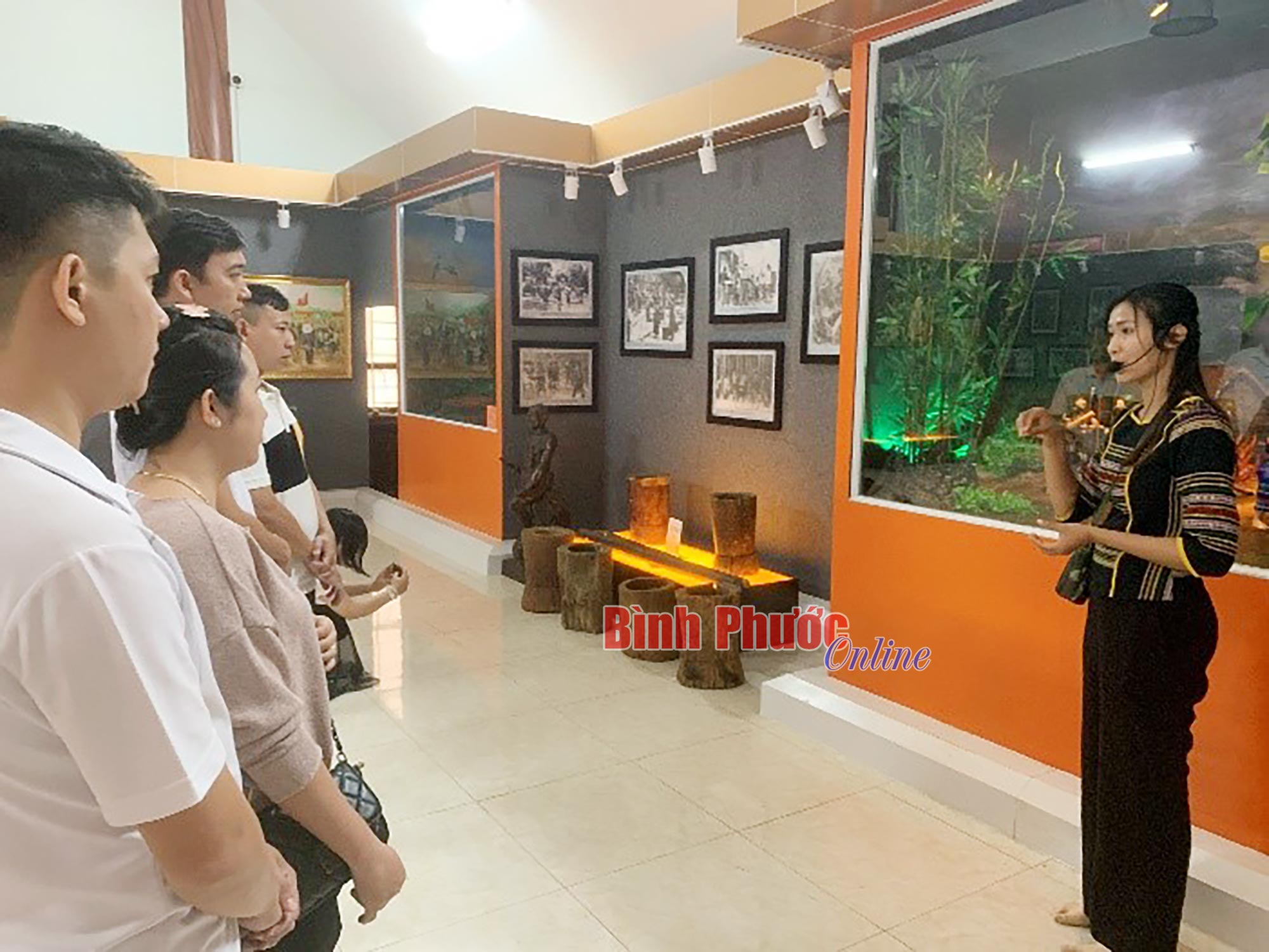 Khách tham quan tại Khu bảo tồn văn hóa dân tộc S’tiêng sóc Bom Bo, huyện Bù Đăng