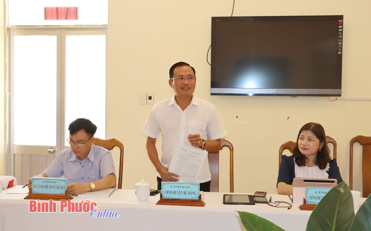 Đại diện UBND huyện Bù Đăng và huyện Lộc Ninh kiến nghị, đề xuất thêm một số giải pháp nâng cao hiệu quả quản lý phát huy giá trị di tích tại địa phương