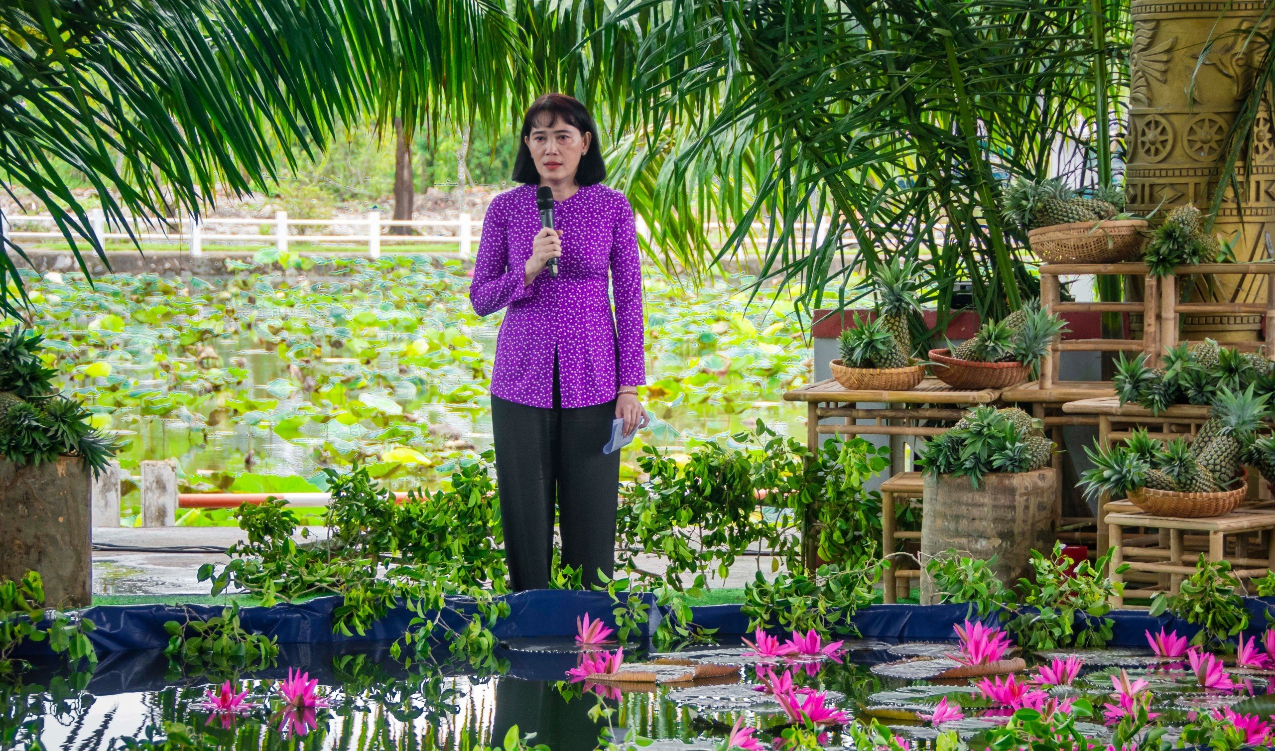 Bà Hồ Thu Ánh - Phó Chủ tịch UBND tỉnh Hậu Giang phát biểu tại buổi họp báo.