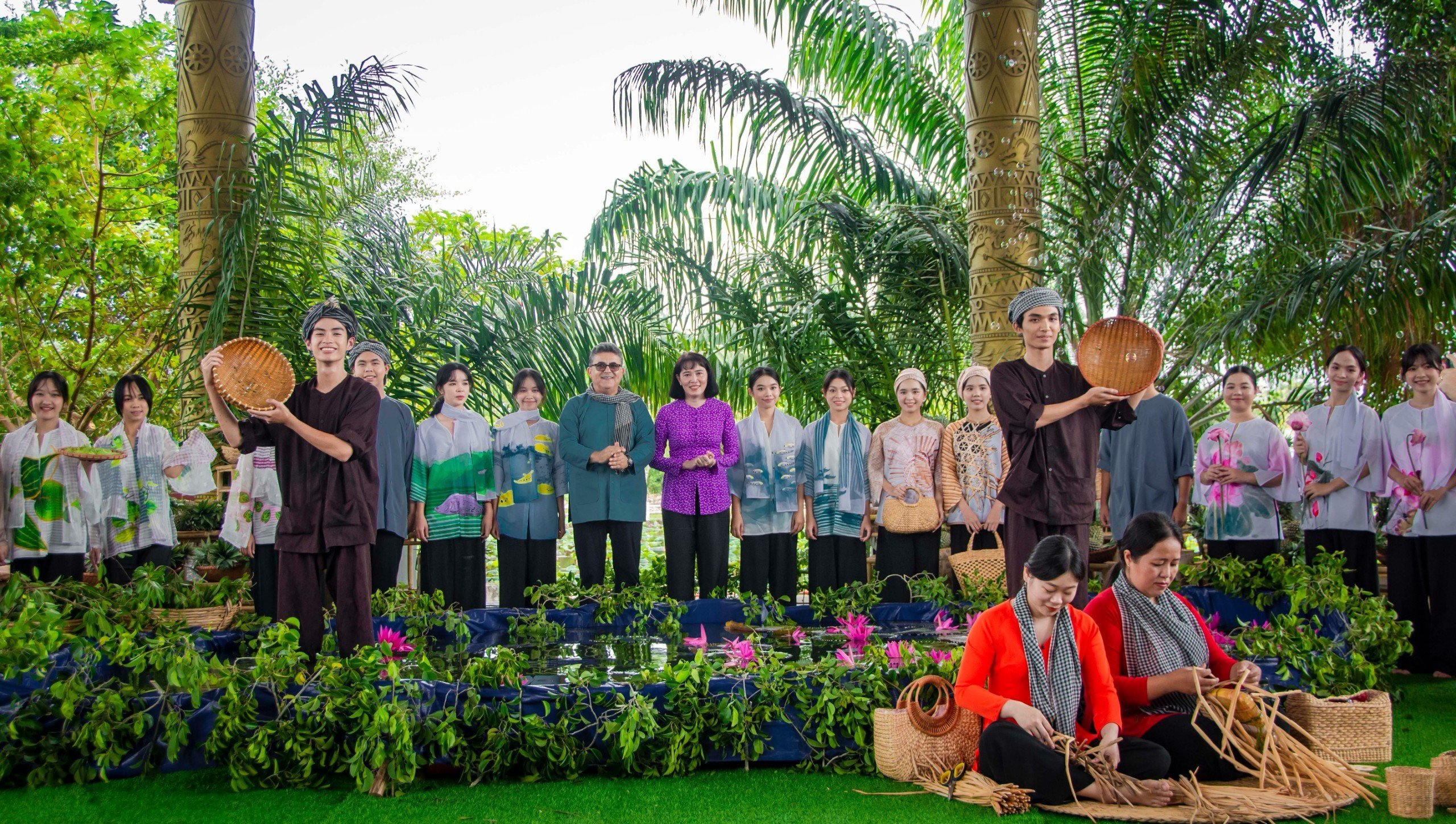 Trong không gian mở và gần gũi, các nhà thiết kế trình diễn bộ sưu tập Áo Bà Ba lấy cảm hứng từ nụ cười, sự cần lao của những tiểu thương chợ Chồm hổm ở phường III, thành phố Vị Thanh; lúa Hậu Giang; trầu Vị Thủy; cá thát lát Hậu Giang, các sản phẩm đan lát từ lục bình, khăn rằn…Tất cả tạo nên điểm nhấn của Hậu Giang.