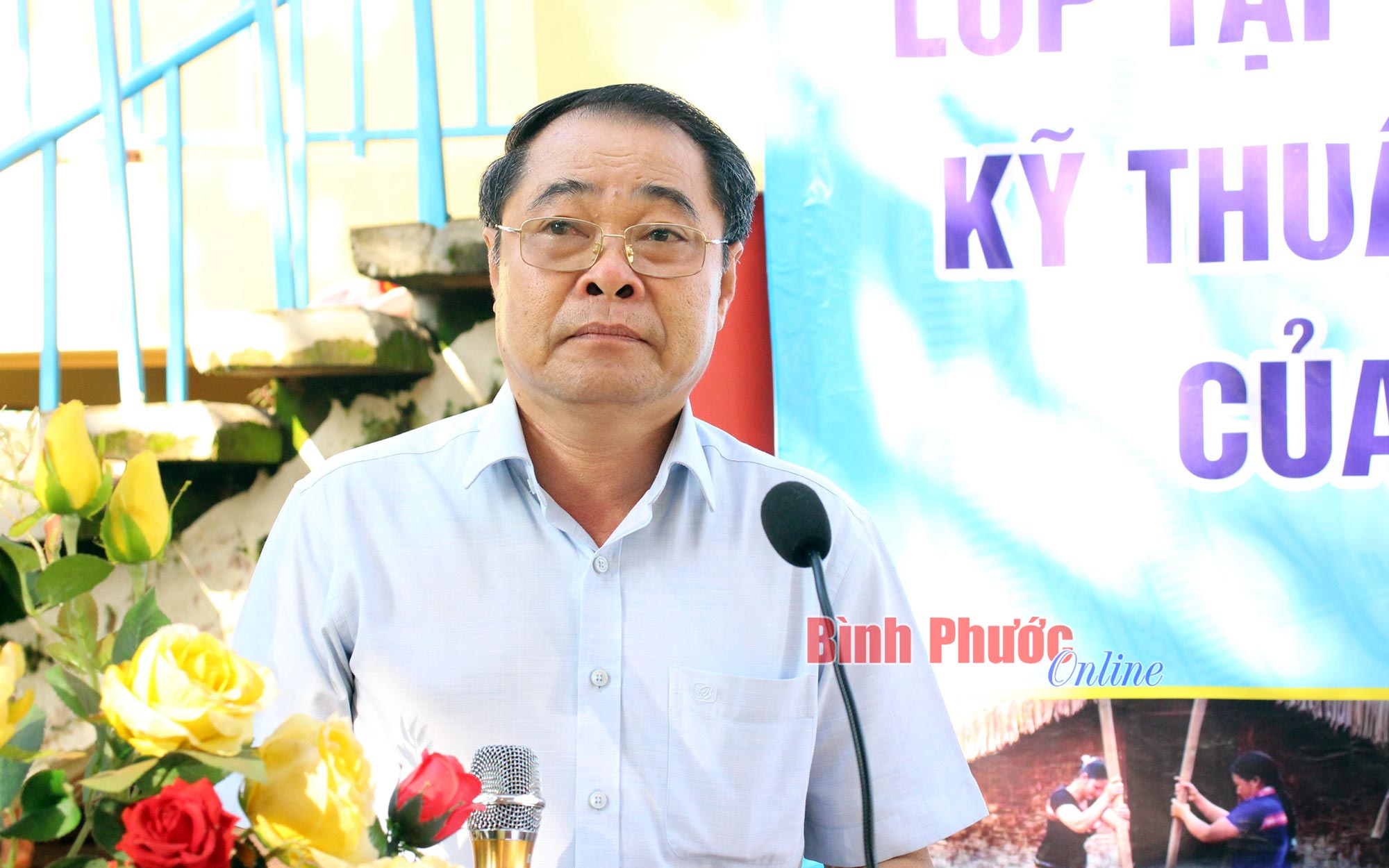 Phó Chủ tịch UBND huyện Phú Riềng Bùi Văn Hiếu phát biểu khai mạc lớp tập huấn kỹ thuật nấu rượu cần