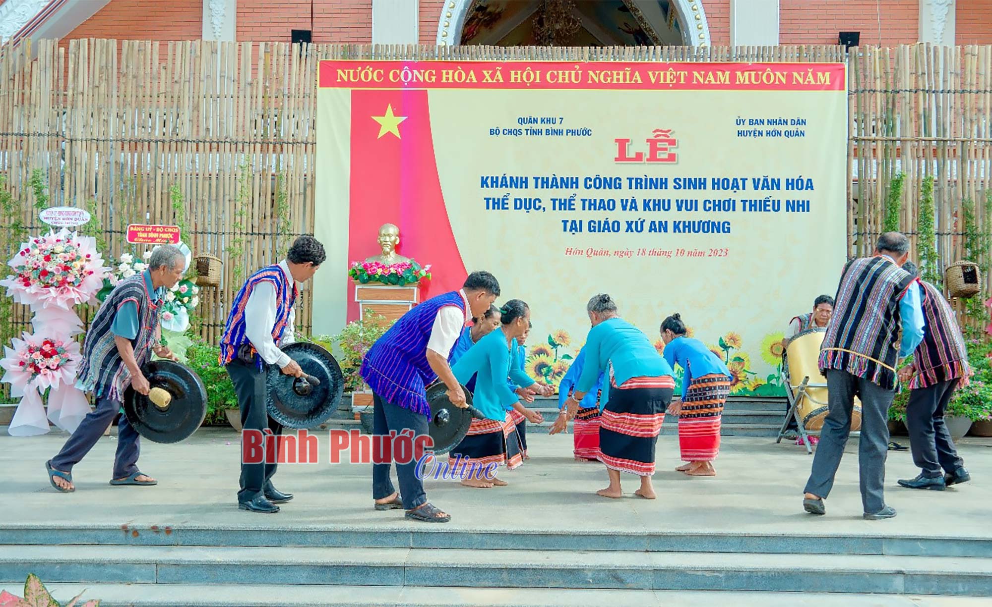 Sau hơn 3 tháng khảo sát, thi công, công trình sinh hoạt văn hóa, thể dục - thể thao và khu vui chơi thiếu nhi tại Giáo xứ An Khương đã hoàn thành với 7 hạng mục gồm: Khu vui chơi thiếu nhi, khu tập thể dục - thể thao ngoài trời, sân bóng đá mini, sân bóng chuyền, sân cầu lông, khu bóng bàn, phòng đọc. Tổng kinh phí xây dựng hơn 790 triệu đồng, trong đó Bộ Tư lệnh Quân khu 7, Bộ Chỉ huy Quân sự tỉnh hỗ trợ 500 triệu đồng; UBND huyện Hớn Quản hỗ trợ 150 triệu đồng; Giáo xứ An Khương vận động hơn 140 triệu đồng.