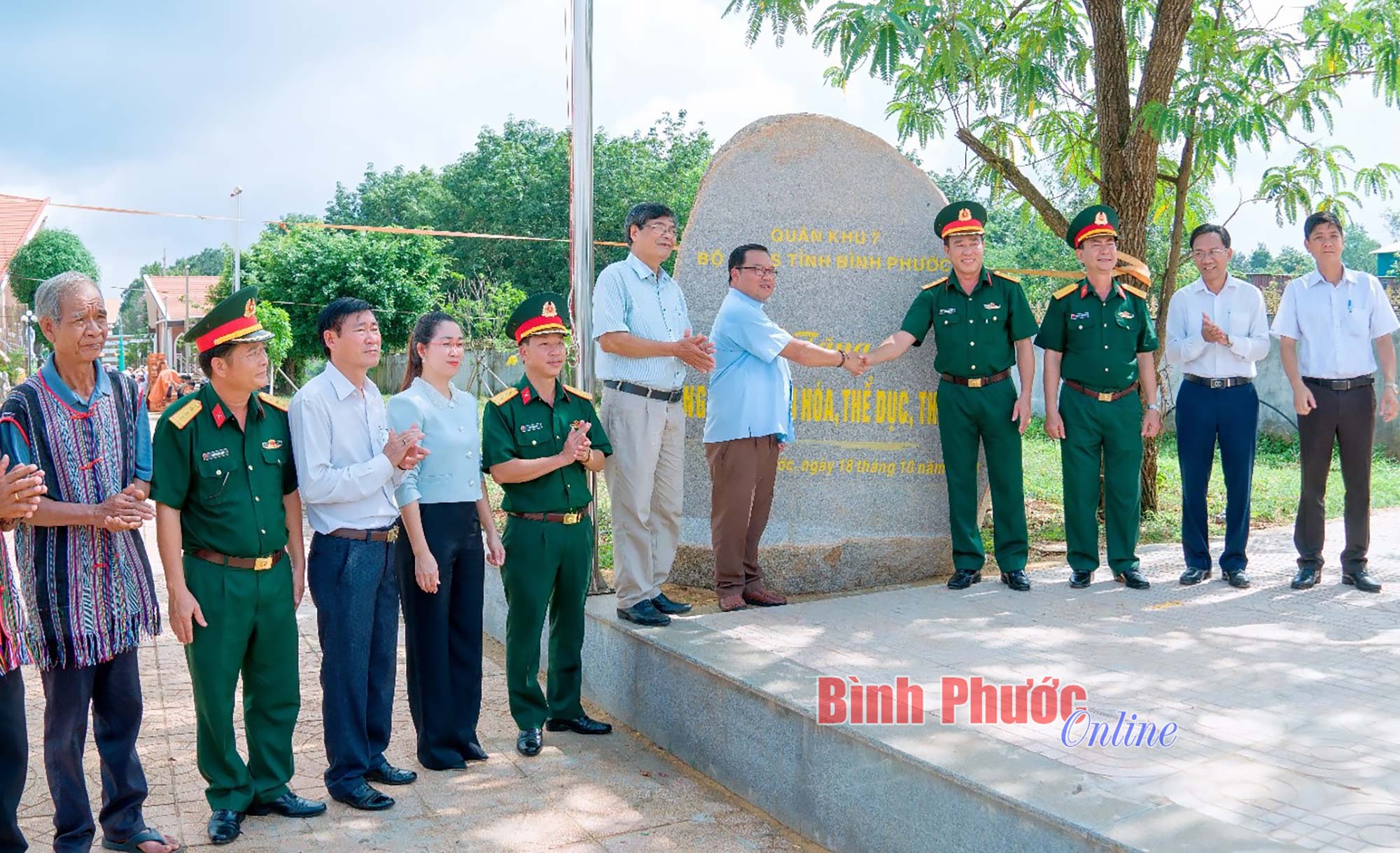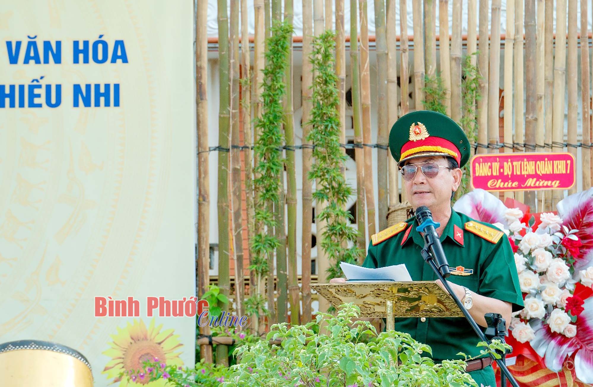 Đại tá Nguyễn Thành Ruân, Phó Chính ủy Bộ Chỉ huy Quân sự tỉnh Bình Phước phát biểu tại lễ khánh thành công trình