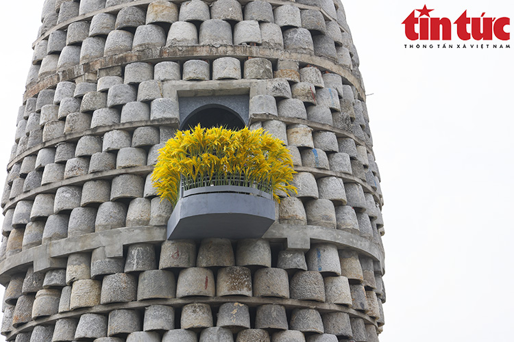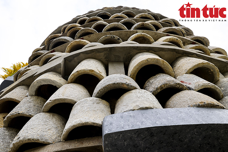 Tháp Thần Nông với chiều cao 15m, chia thành 5 tầng được ghép bởi 1012 chiếc cối đá.