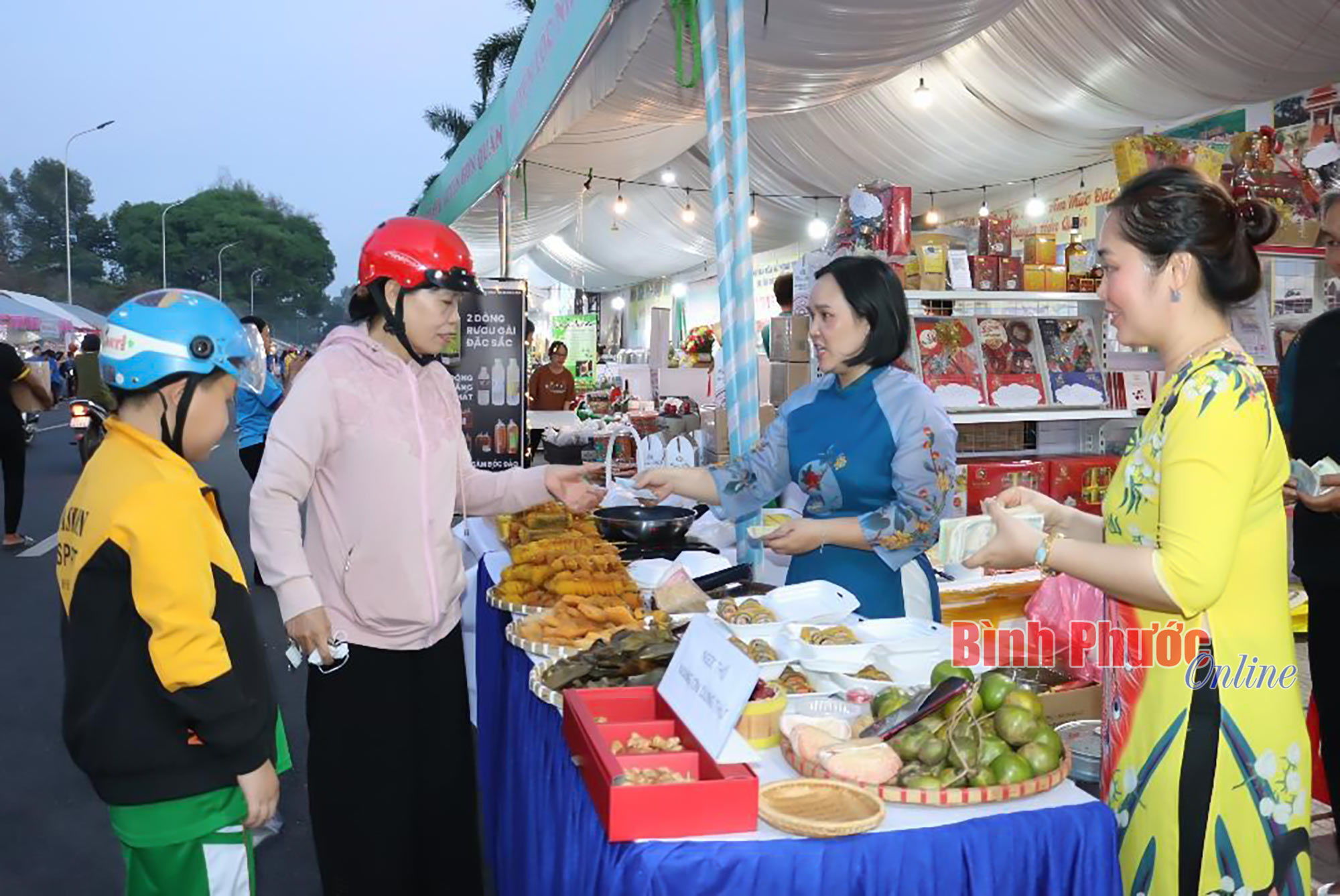 Từ buổi chiều khi các gian hàng đang còn hoàn tất khâu trang trí chuẩn bị các món ăn đã thu hút nhiều người dân đến với không gian lễ hội