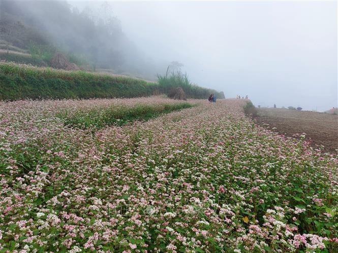 Hoa tam giác mạch tại Cao nguyên đá Đồng Văn (Hà Giang) là điểm đến thu hút du khách trong và ngoài nước. Ảnh tư liệu: Đinh Thuận/TTXVN