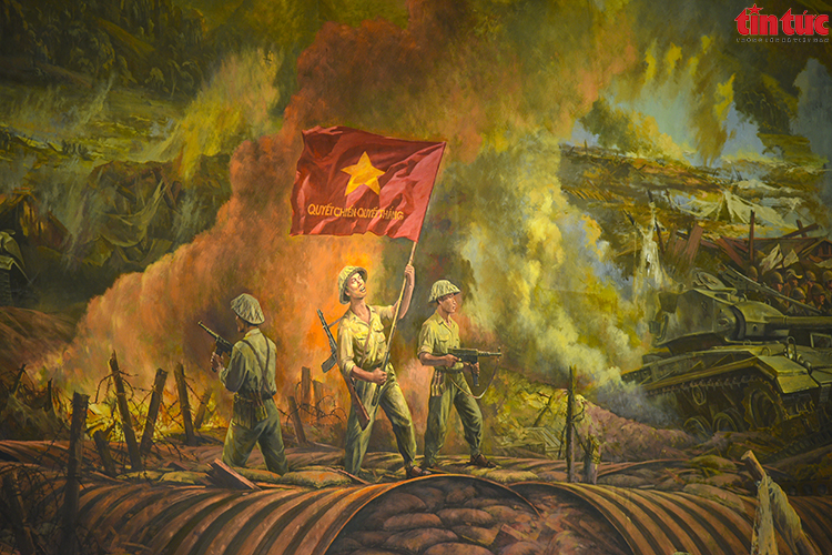 Bức tranh panorama "Chiến dịch Điện Biên Phủ" thu hút sự quan tâm của đông đảo du khách tới Bảo tàng Chiến thắng lịch sử Điện Biên Phủ. Ảnh: Lê Phú/Báo Tin tức