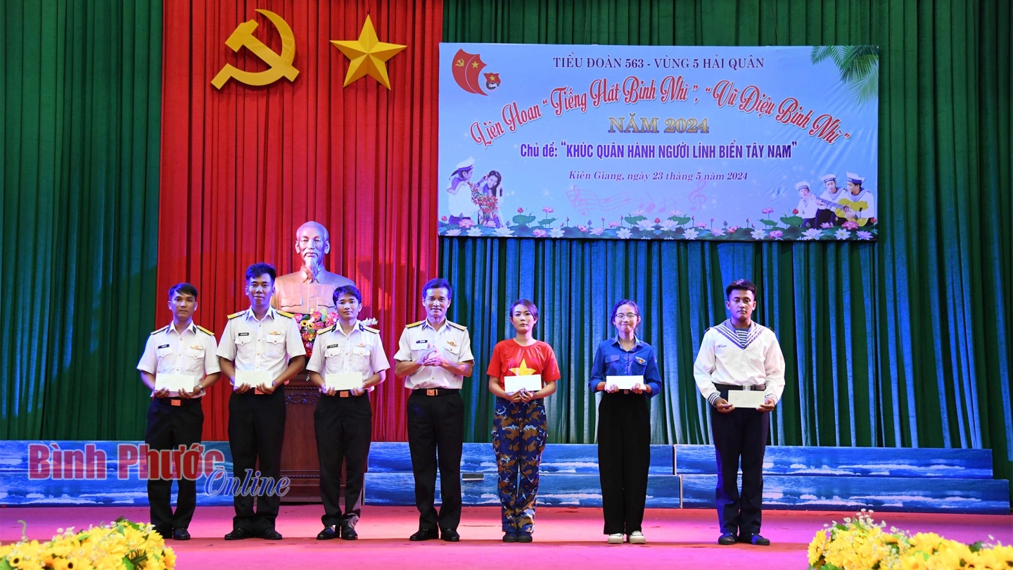 Đại tá Lê Văn Hưởng, Phó Chính ủy Vùng 5 Hải quân trao giải cho các tập thể, cá nhân