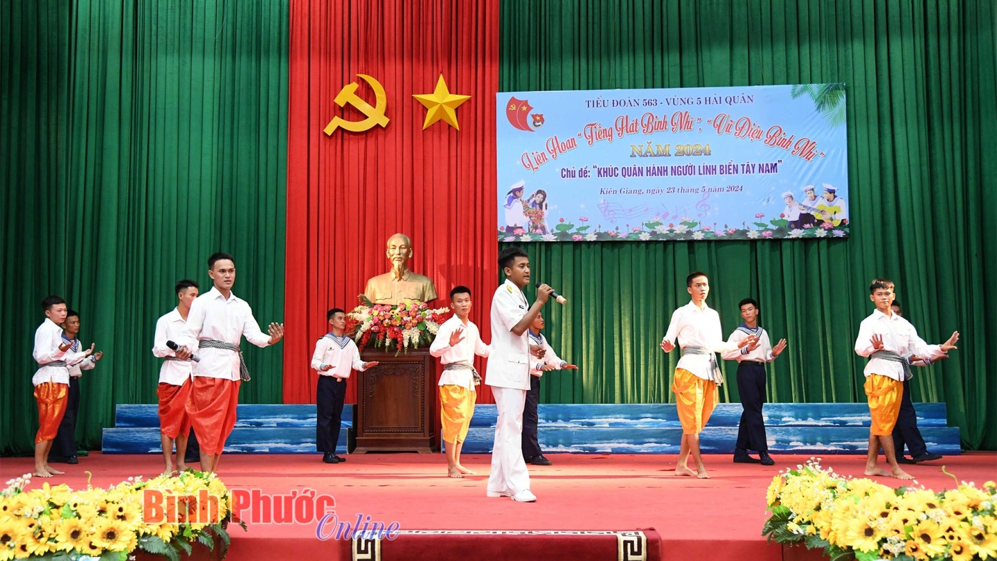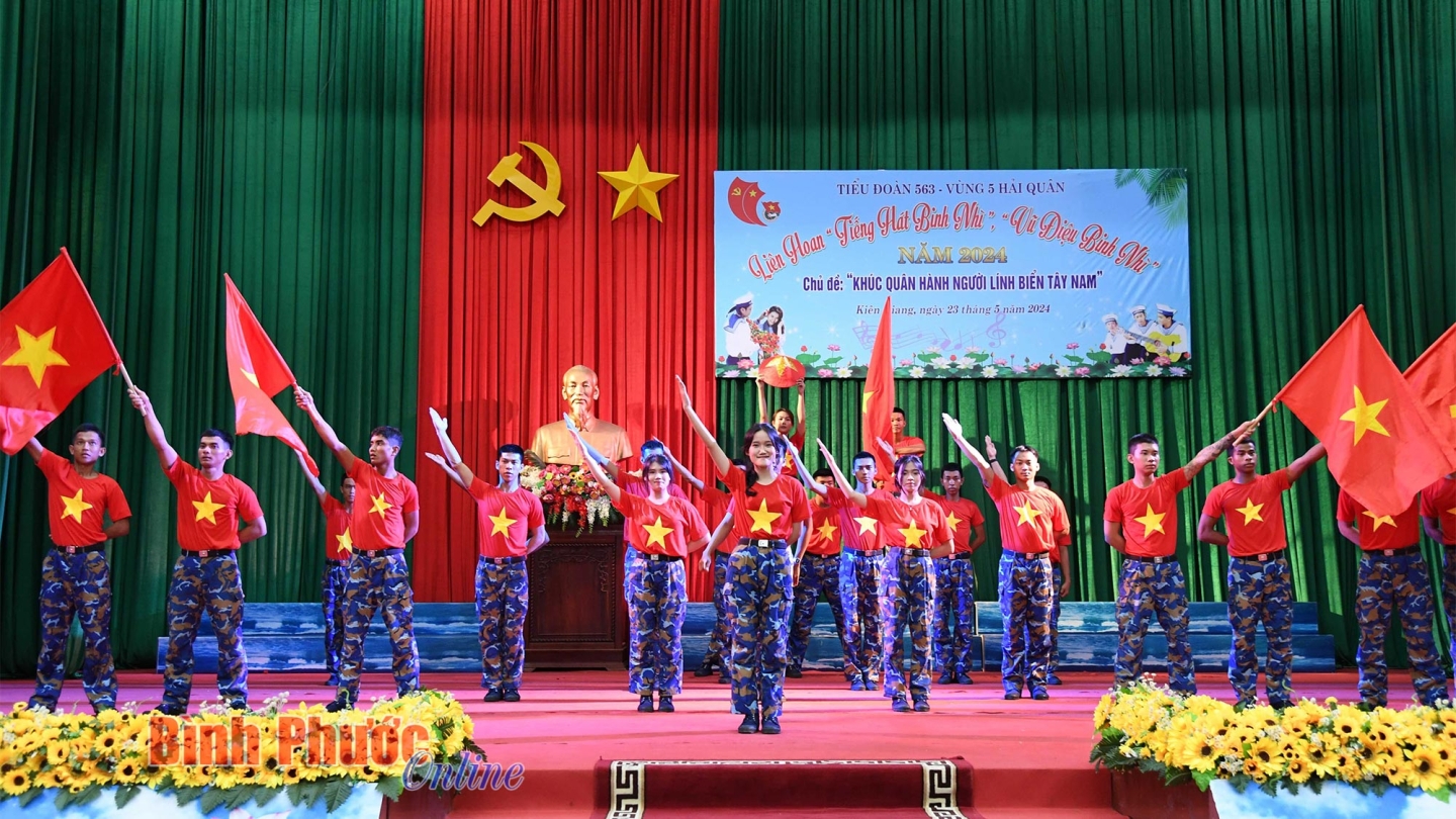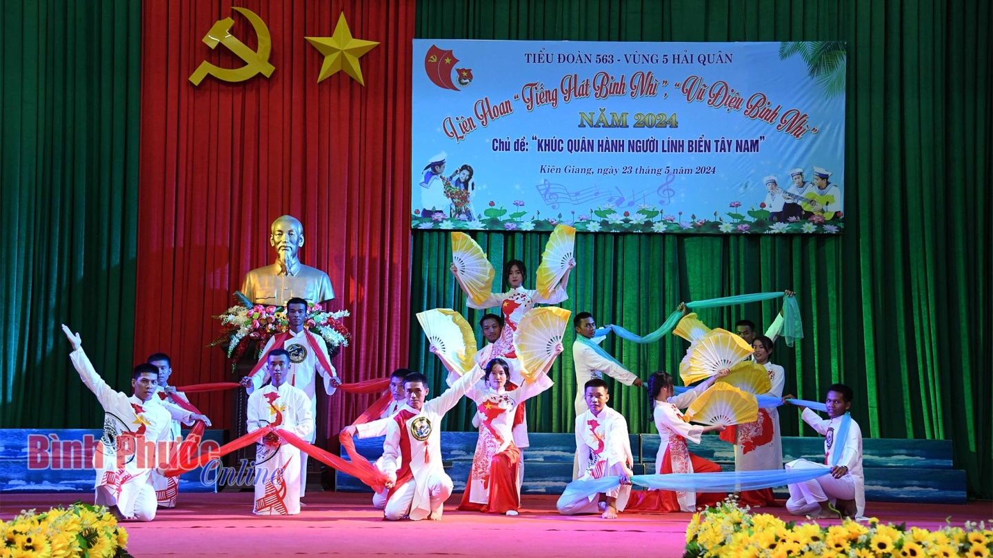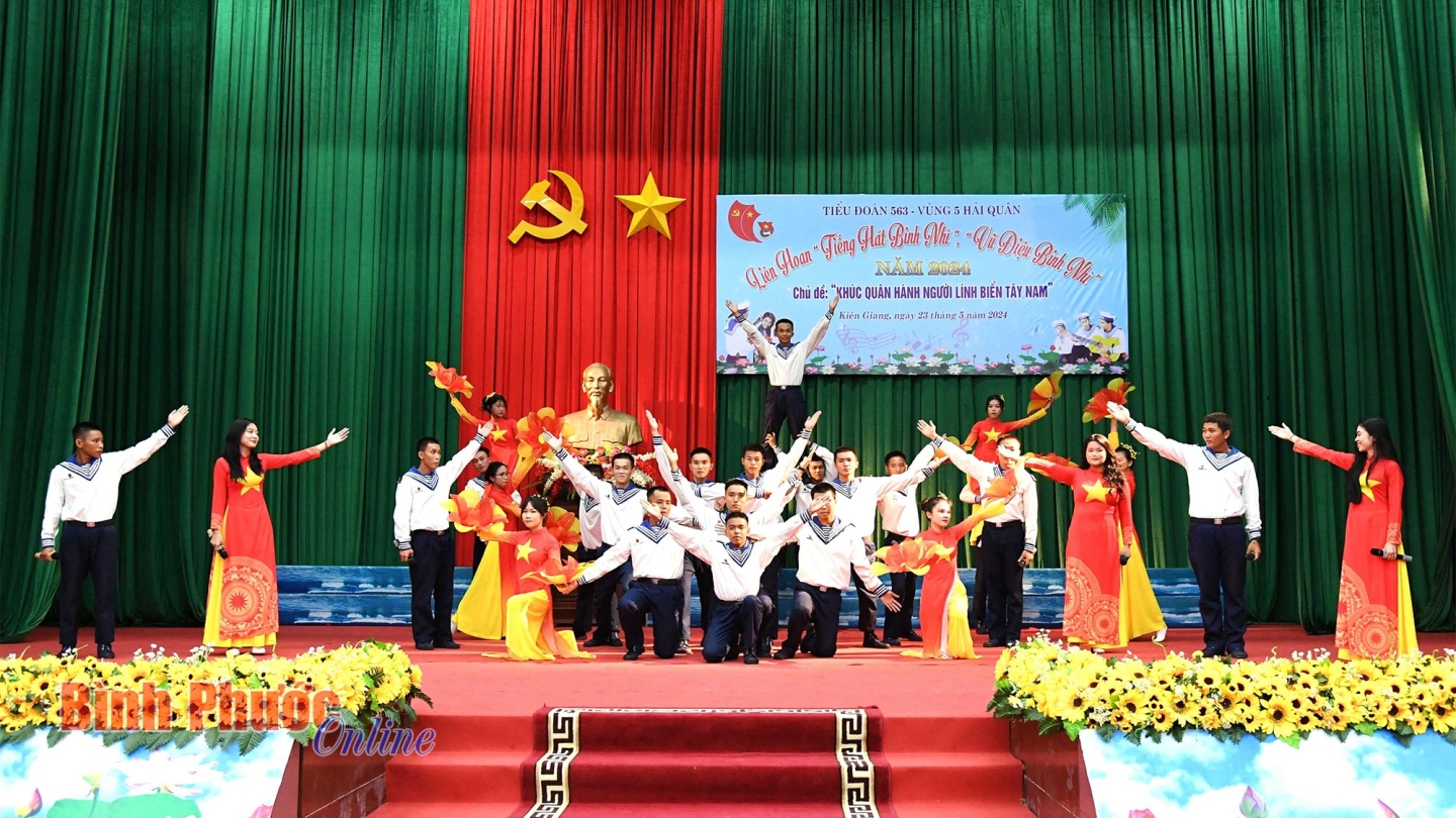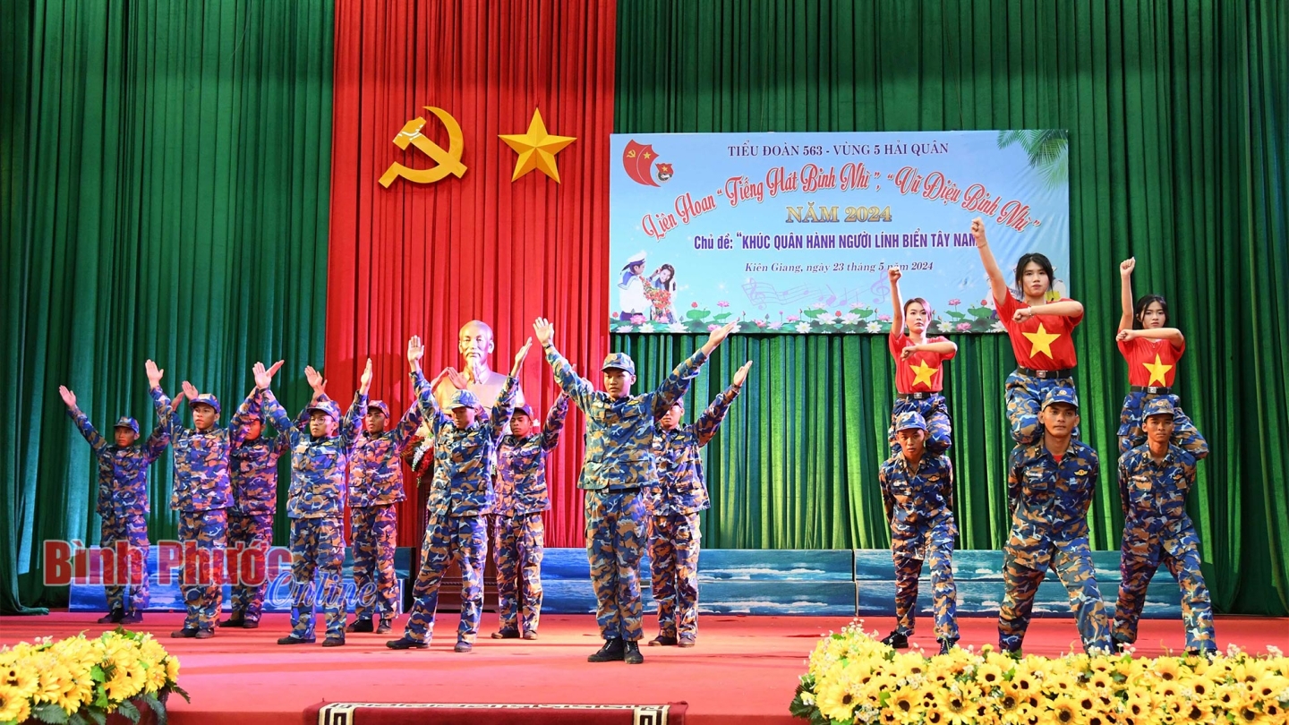 Liên hoan “Tiếng hát binh nhì, vũ điệu binh nhì” năm 2024 có sự tham gia 3 đội văn nghệ với hơn 100 diễn viên không chuyên đến từ Tiểu đoàn 563 và các đơn vị kết nghĩa trên địa bàn đóng quân.