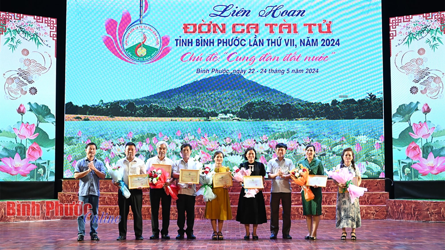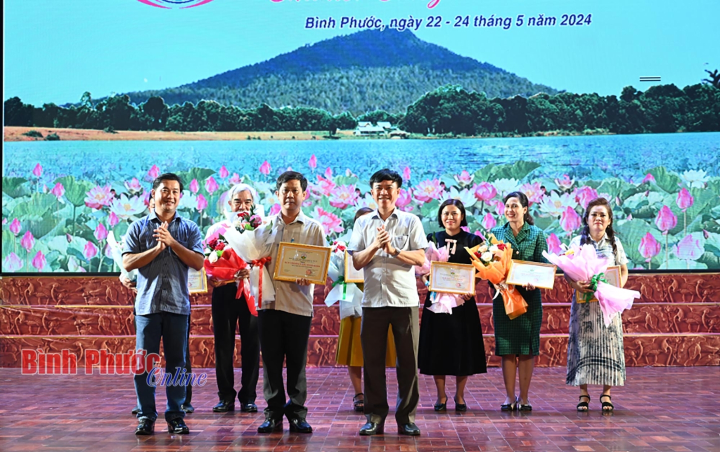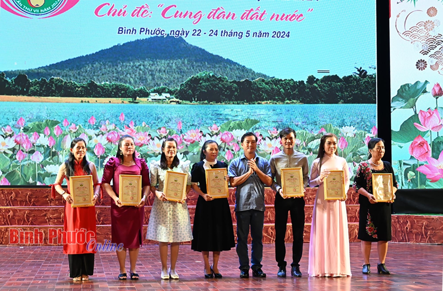 Kết thúc liên hoan, Ban tổ chức đã trao 5 huy chương vàng, 14 huy chương bạc, 11 giải ba, 15 giải khuyến khích cho các cá nhân và các đoàn có phần thi xuất sắc nhất. Ban tổ chức cũng đã trao giải nhất toàn đoàn cho đơn vị huyện Bù Đốp; 3 giải nhì cho các đơn vị thị xã Chơn Thành, huyện Bù Gia Mập và huyện Phú Riềng; đơn vị thành phố Đồng Xoài, huyện Đồng Phú và huyện Lộc Ninh đồng giải ba. Ngoài ra, Ban tổ chức còn trao 2 giải phụ dành cho người lớn tuổi nhất, người nhỏ tuổi nhất và 2 giải sáng tác mới nhất, hay nhất đúng nội dung, chủ đề của liên hoan đưa ra.