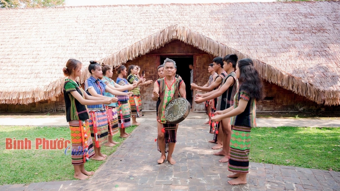 Các nghệ nhân trình diễn chiêng trong lễ hội Mừng lúa mới của người S’tiêng tại Khu bảo tồn văn hóa dân tộc S’tiêng sóc Bom Bo - Ảnh TL