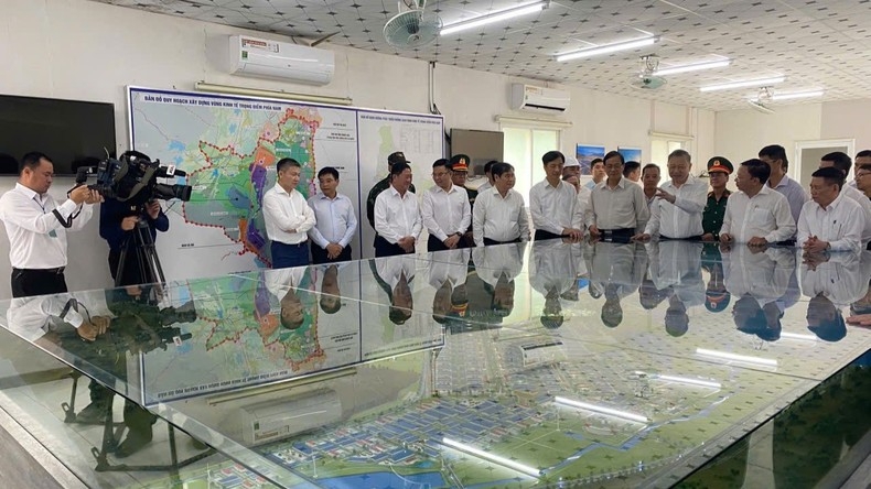 Tổng Bí thư và Đoàn công tác của Trung ương thăm Cảng biển tổng hợp Cà Ná, thuộc xã Phước Diêm, huyện Thuận Nam.