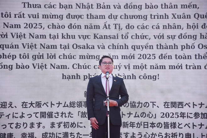Phát biểu khai mạc sự kiện, Tổng Lãnh sự Osaka Ngô Trịnh Hà cho biết Chương trình Xuân Quê hương-Trái tim Việt Nam 2025 là cơ hội quý báu để cộng đồng người Việt Nam đang sinh sống, học tập tại khu vực Osaka nói riêng và trên đất nước Nhật Bản nói chung có dịp gặp gỡ, giao lưu, tăng cường tinh thần đoàn kết, hỗ trợ lẫn nhau trong cuộc sống.