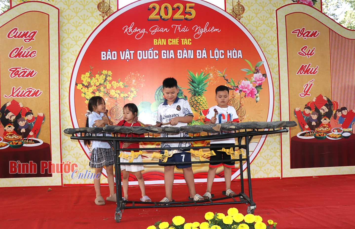 Bé Minh Thiện, phường Tân Phú, thành phố Đồng Xoài chia sẻ: Thường con được thấy đàn đá trên ti vi và thầy cô giới thiệu nhưng nay được trực tiếp đánh đàn đá con vô cùng thích thú.
