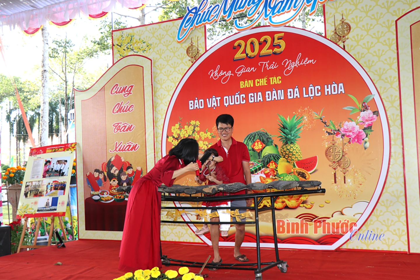Chị Đào Tuyết, phường Tiến Thành, thành phố Đồng Xoài chia sẻ: Tranh thủ những ngày nghỉ tết, tôi cùng gia đình tham quan và đều thích thú với không gian “Di sản văn hóa Bình Phước”. Lần đầu thưởng thức không gian hội tụ gần như đầy đủ các di tích, di sản văn hóa trên địa bàn tỉnh không chỉ sắc xuân đa dạng mà giúp các con tìm hiểu thêm về văn hóa của địa phương mình.