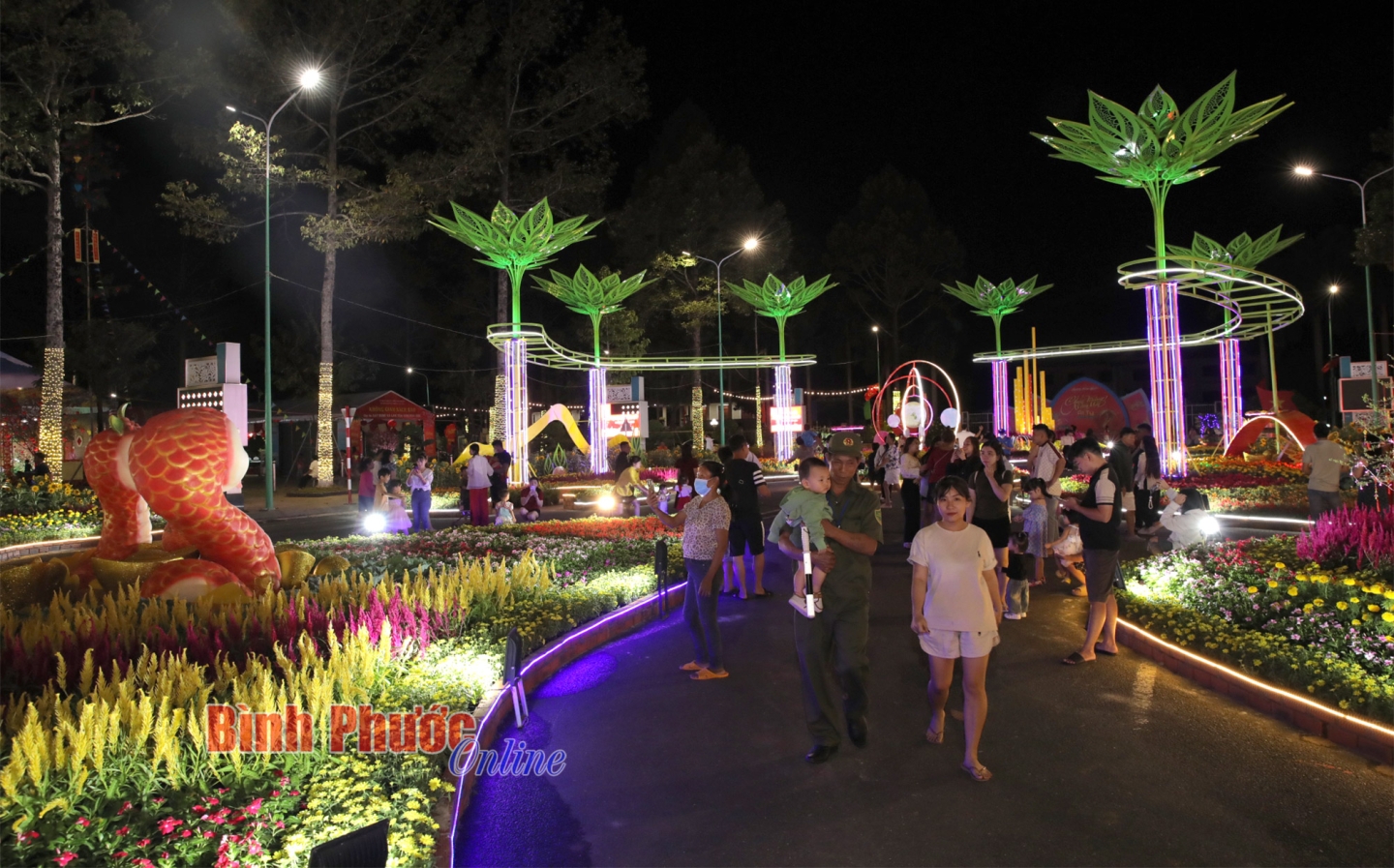 Cùng với Trung tâm văn hóa tỉnh, Quảng trường thành phố Đồng Xoài, không gian rực rỡ sắc màu với nhiều hoạt động vui chơi, giải trí sôi động trong đêm giao thừa đã góp phần tạo không khí vui tươi, phấn khởi để người dân bước vào năm mới Ất Tỵ với niềm tin thắng lợi mới.