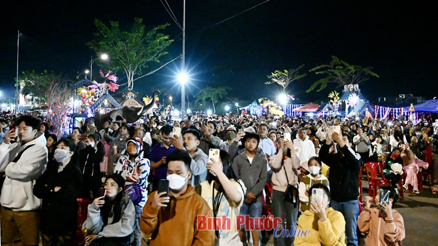 Tham gia chương trình, người dân đã xem phóng sự thành tựu về kinh tế, văn hóa, xã hội, quốc phòng, an ninh của huyện Lộc Ninh năm 2024. Hòa vào niềm vui mừng Đảng quang vinh, mừng xuân Ất Tỵ, mừng quê hương đổi mới, người dân được thưởng thức chương trình nghệ thuật chào xuân Ất Tỵ 2025 gồm hai phần: Đảng cho ta mùa xuân và Khát vọng mùa xuân. Chương trình nghệ thuật mang đến nhiều tiết mục độc đáo, đa dạng thể loại, từ hát múa, tốp ca đến biểu diễn xiếc, hài kịch, hòa tấu “Bảo vật quốc gia” Đàn đá Lộc Hòa… Tất cả đã mang đến một không khí rộn ràng, tạo khí thế để cùng hướng đến khát vọng chung tay dựng xây, phát triển quê hương ngày càng phồn vinh, giàu mạnh.