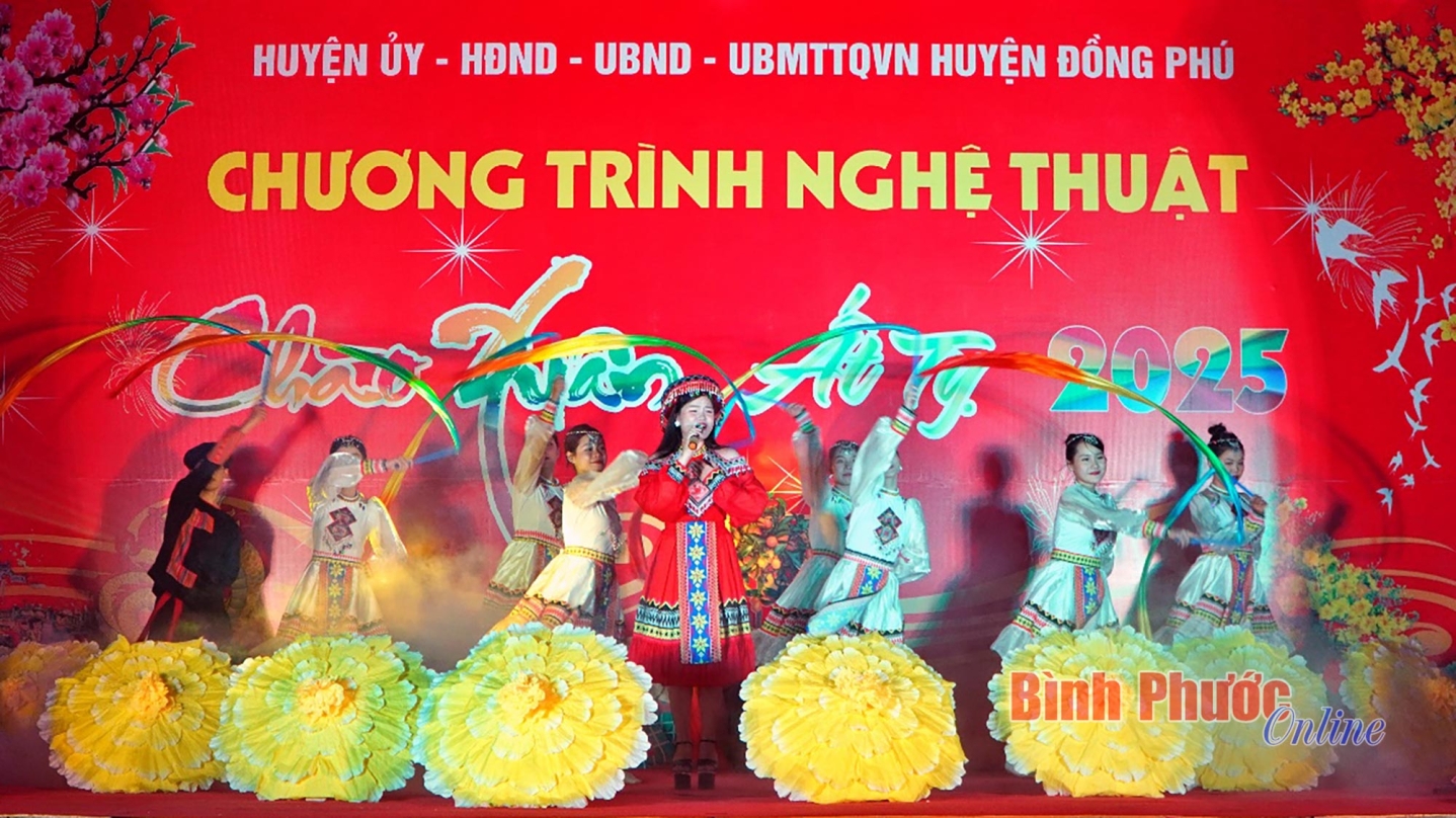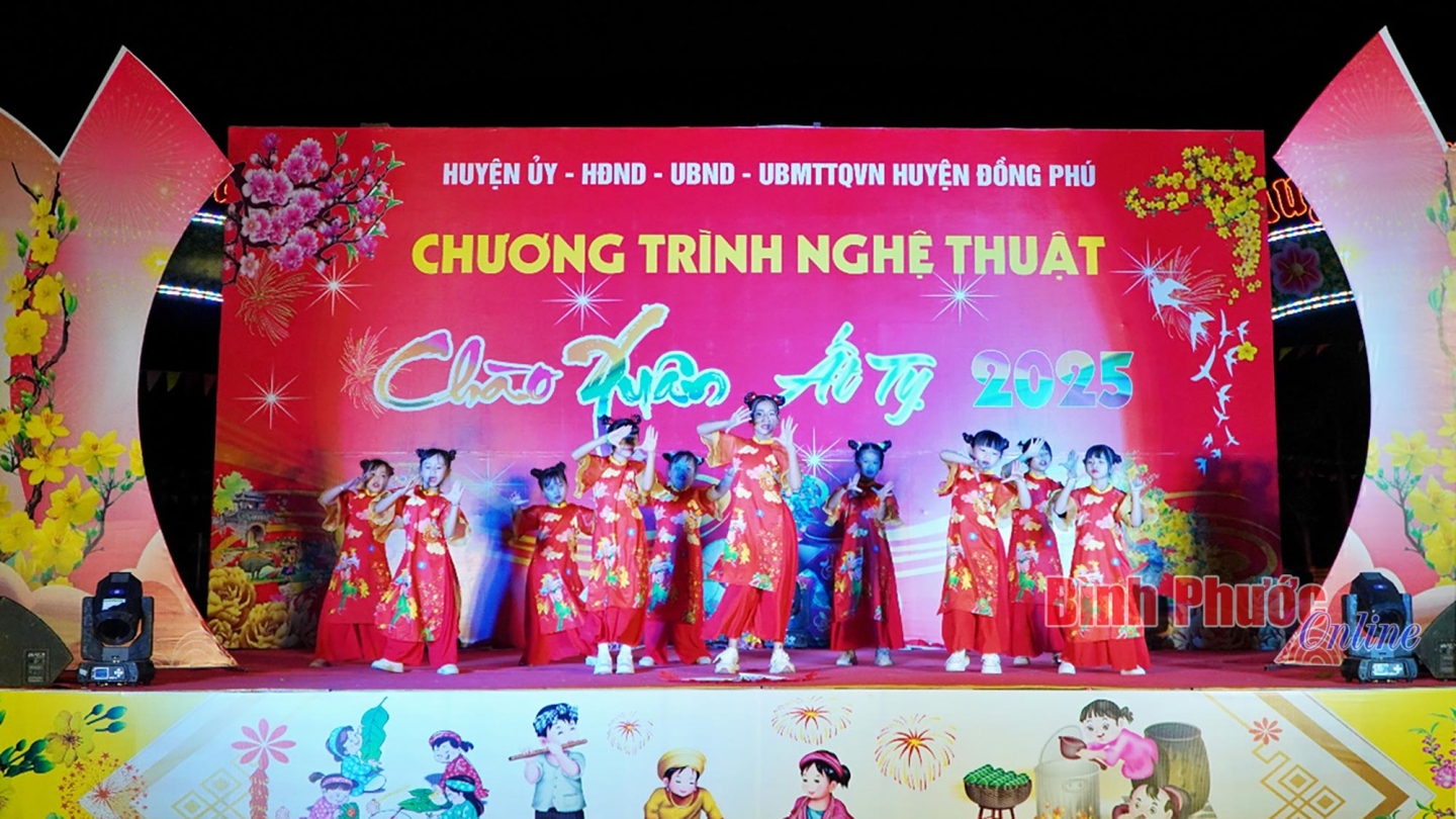 Đông đảo người dân và các em thiếu nhi đã đến xem chương trình nghệ thuật đặc biệt mừng Đảng, mừng xuân của huyện Đồng Phú