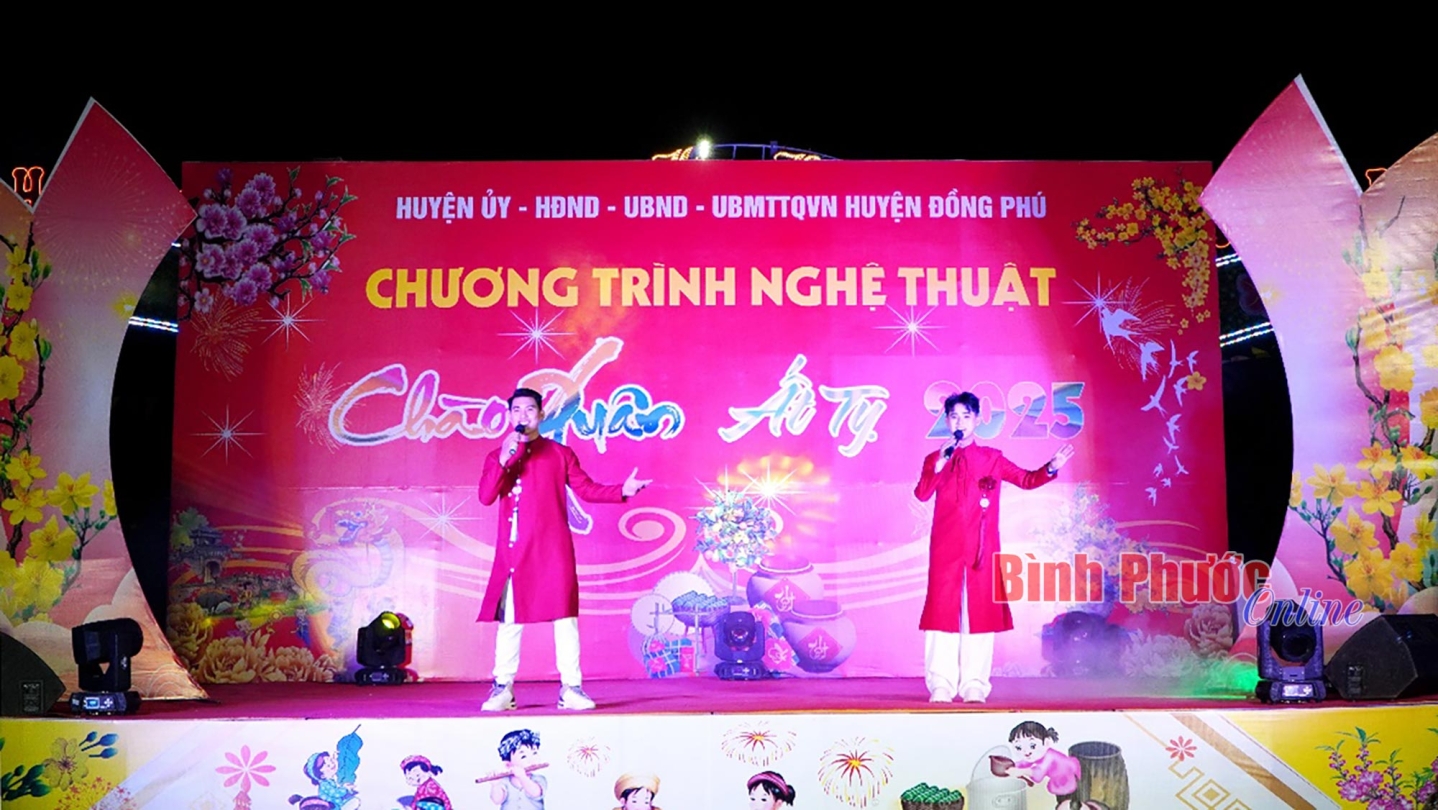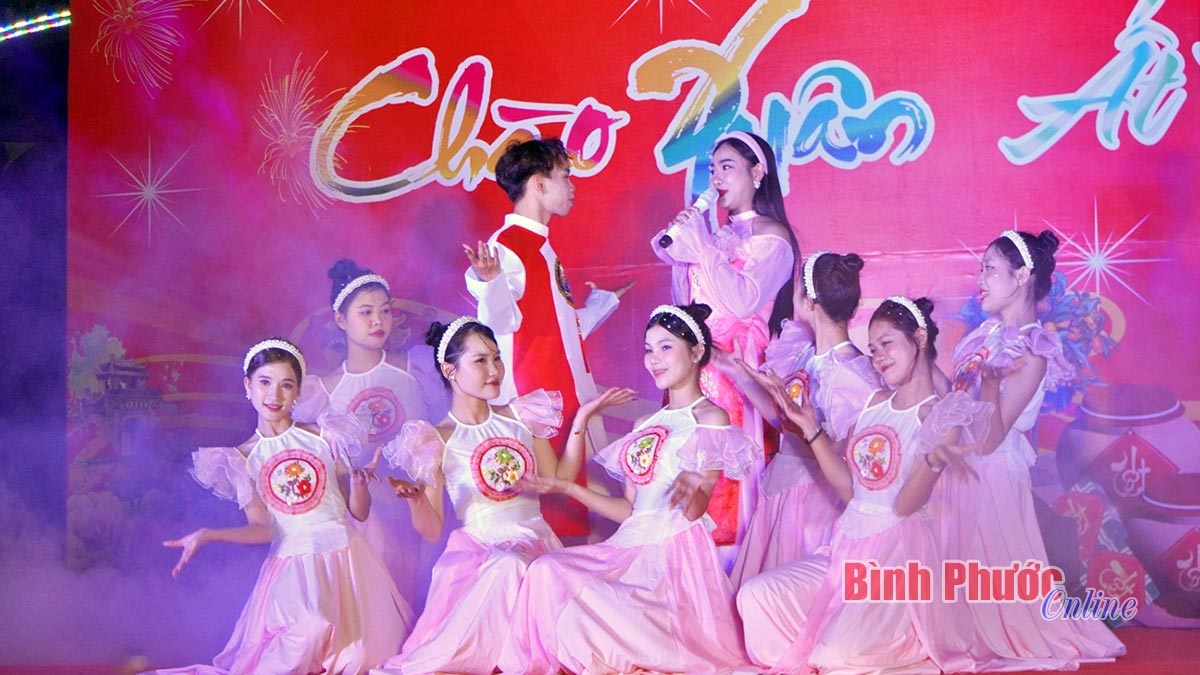 Với 15 tiết mục hết sức ấn tượng do các ca sĩ, diễn viên múa đến từ Trung tâm Văn hóa tỉnh và các câu lạc bộ khiêu vũ trong và ngoài huyện biểu diễn. Chương trình không chỉ mang đến một bữa tiệc âm nhạc hiện đại, đầy sắc màu mà còn đưa người xem trở về với những giá trị truyền thống của tết cổ truyền.