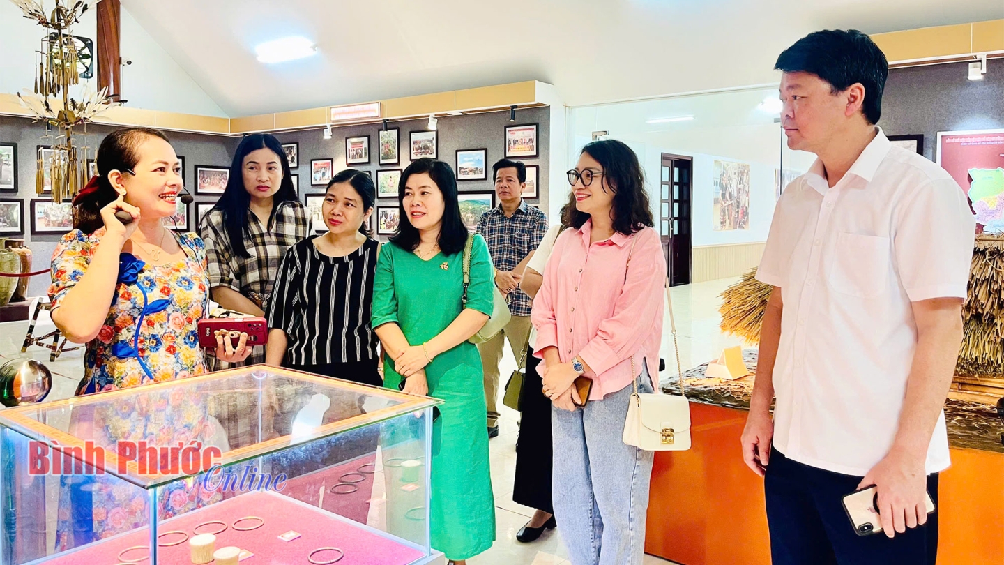 Đoàn công tác Báo Thái Nguyên tham quan không gian trưng bày truyền thống văn hóa, lịch sử của đồng bào S’tiêng
