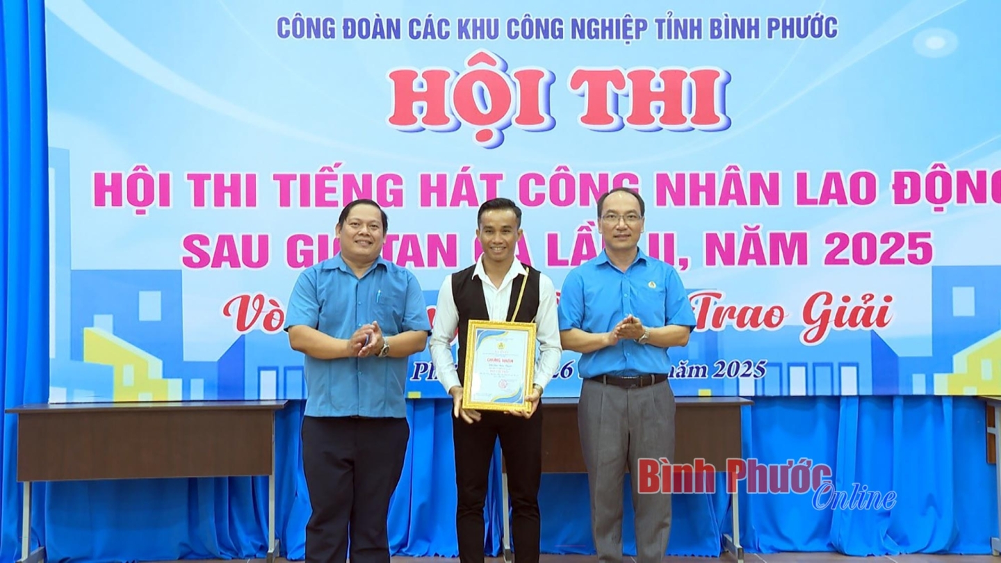 Kết thúc hội thi, Công đoàn các khu công nghiệp tỉnh Bình Phước đã trao giải cho các thí sinh có tác phẩm biểu diễn xuất sắc. Trong đó, giải Nhất thuộc về thí sinh Điểu Duyên, công nhân Công ty TNHH Long Fa, Khu công nghiệp Minh Hưng III, thị xã Chơn Thành.
