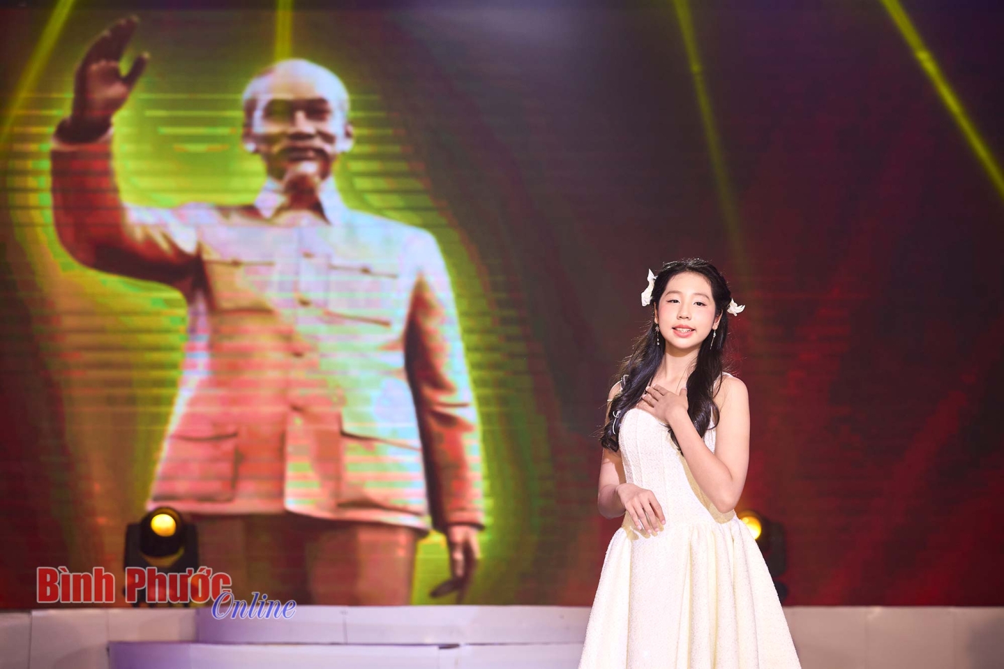 Ca sĩ Thiên Kim trong ca khúc "Lời Bác mãi còn đây", sáng tác của nhạc sĩ Nguyễn Văn Chung