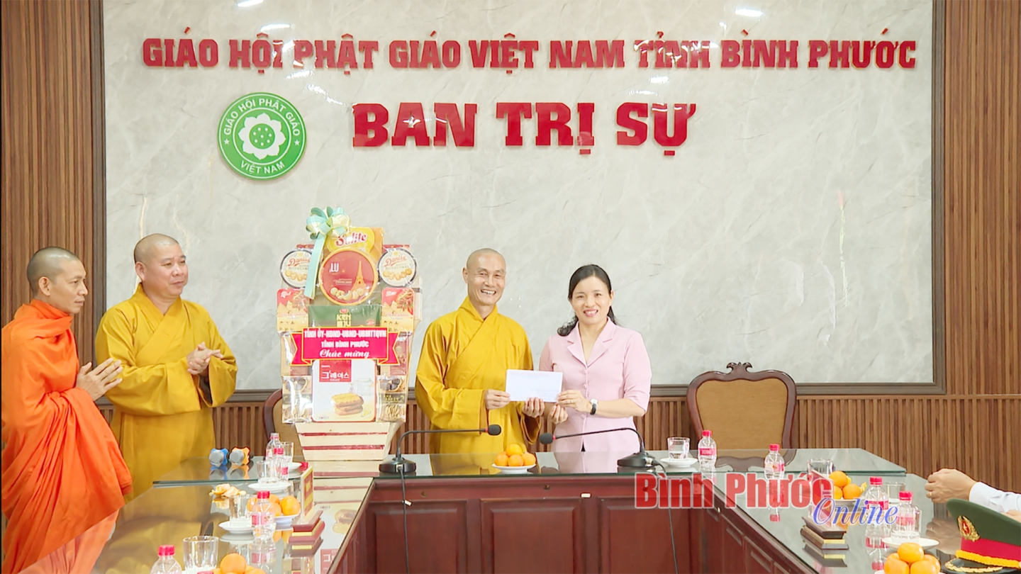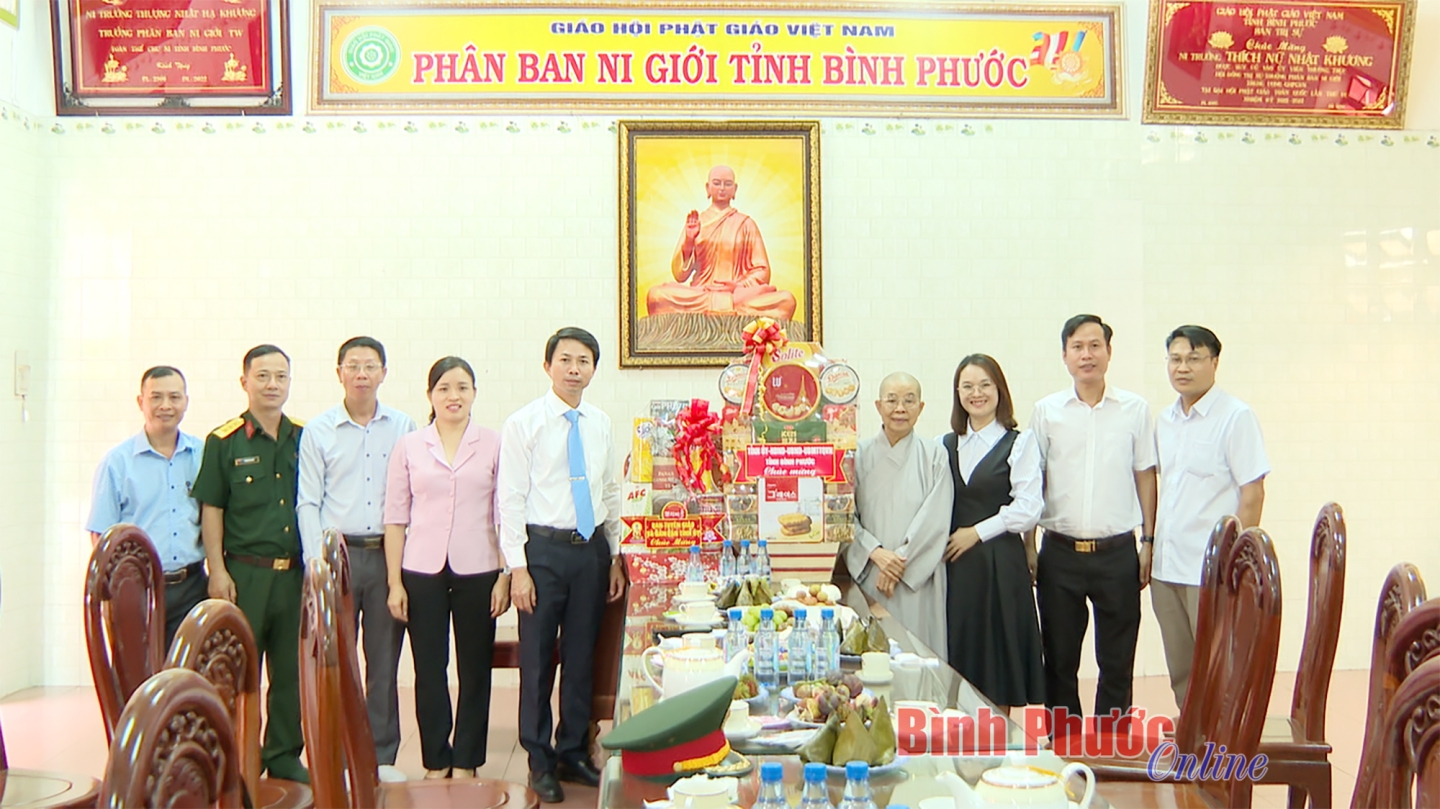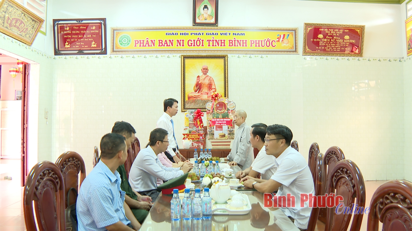 Tại chùa Quang Minh (phường Tân Đồng, thành phố Đồng Xoài), đoàn công tác gửi những lời chúc mừng tốt đẹp nhân Đại lễ Phật đản