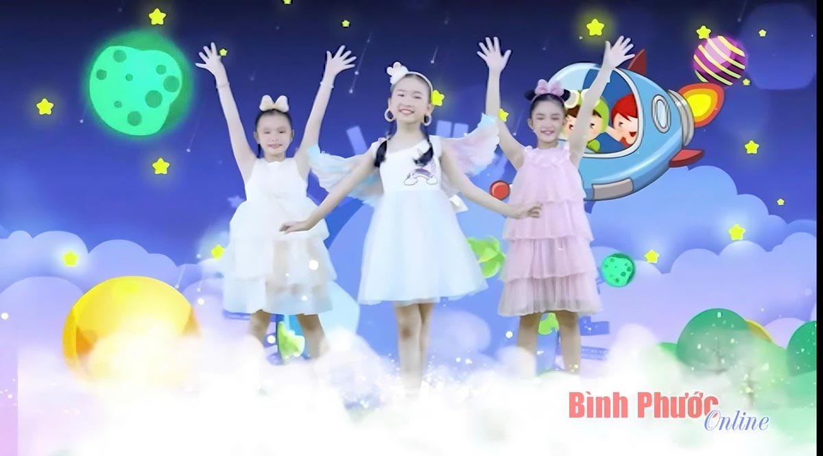 Ca sĩ Ái Khanh và Nhóm Erobic kids Phong Sương trong ca khúc “Vòng tay địa cầu”, sáng tác Bùi Anh Tôn