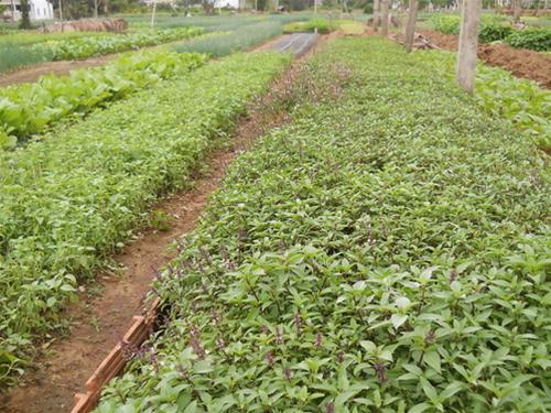 Không cần phân hóa học, cây rau bám sâu vào lớp đất tơi xốp quyện với rong hóa mùn mà lên mươn mướt, tạo nên sắc thái riêng cho rau Trà Quế.