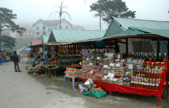Một góc chợ bán các mặt hàng sản vật địa phương.  |