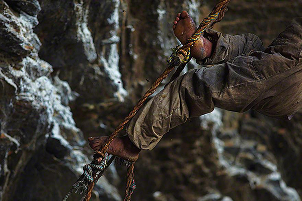 Họ sử dụng những dụng cụ mà cha ông họ đã sử dụng hàng ngàn đời nay - thang dây thừng bện bằng tay, gậy tre dài và sắc để cắt các tổ ong trên vách đá. Sau khi hun khói vào hang để đuổi ong ra ngoài, họ sẽ trèo lên bằng thang và thu hoạch mật ong.