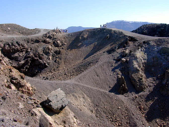 Du khách tham quan các miệng núi lửa ở Santorini |