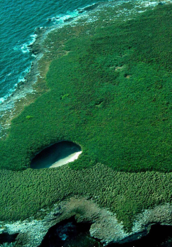 Nhìn từ trên cao, bãi tắm giống như một miệng hố khổng lồ đầy nắng mặt trời.