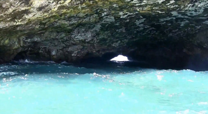 | Ngõ thông giữa bãi tấm Hidden Beach với đại dương bên ngoài |