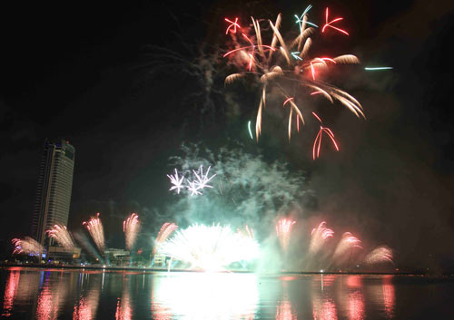 Tất nhiên, không thể không nhắc đến những màn pháo hoa mà 8 quốc gia đình đám như Anh, Úc, Áo, Thụy Sỹ… sẽ vẽ lên bầu trời Đà Nẵng những tuyệt tác bằng ánh sáng trong năm đêm trình diễn mang 5 chủ đề Hỏa-Thổ-Kim- Thủy- Mộc. Chỉ nghe tới đây thôi, đã có thể mường tượng khung cảnh cảng sông Hàn rực sáng và những màn pháo hoa bung lên không trung, nở ra nào cẩm tú cầu, bông lúa, nào trái tim, quốc kỳ…