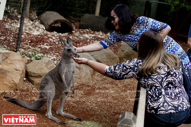 Chúng tôi đến tham quan công viên hoang dã có tên Featherdale Wildlife Park. Tại đây, du khách có thể chiêm ngưỡng các loại thú và chim của nước Úc. Nếu bạn là người yêu thích và mong muốn tìm hiểu những loài động vật hoang dã thì đây là điểm đến cực kỳ lý tưởng. Kangaroo hay còn gọi là Chuột túi là loài vật đặc trưng chỉ có ở Úc nên chúng sớm trở thành biểu tượng cho đất nước rộng lớn này, đây cũng là lý do kéo du khách đến với Úc.