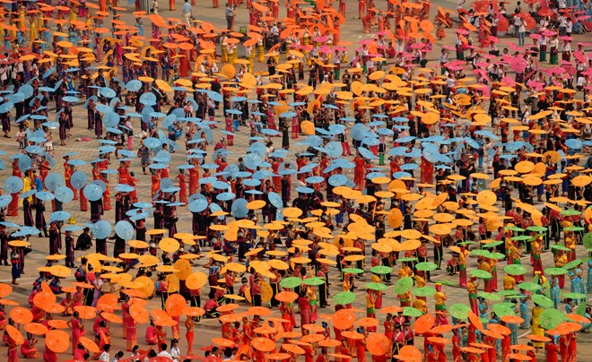 Một điệu múa xòe ô cổ truyền ở thành phố Jinghong, tỉnh Vân Nam, miền tây nam Trung Quốc đã lập kỷ lục thế giới mới với hơn 10.000 người cùng biểu diễn.