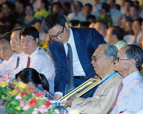 Phó Thủ tướng Vũ Đức Đam trao Bằng khen của Thủ tướng Chính phủ cho Giáo sư Trần Văn Khê