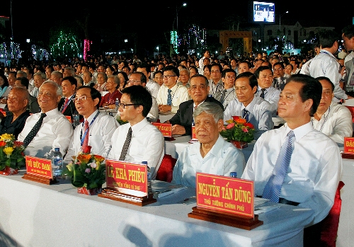 Thủ tướng Chính phủ Nguyễn Tấn Dũng, nguyên Tổng Bí thư Lê Khả Phiêu, Phó Chủ tịch Quốc hội Uông Chu Lưu, Phó Thủ tướng Chính phủ Vũ Đức Đam... dự Khai mạc Festival