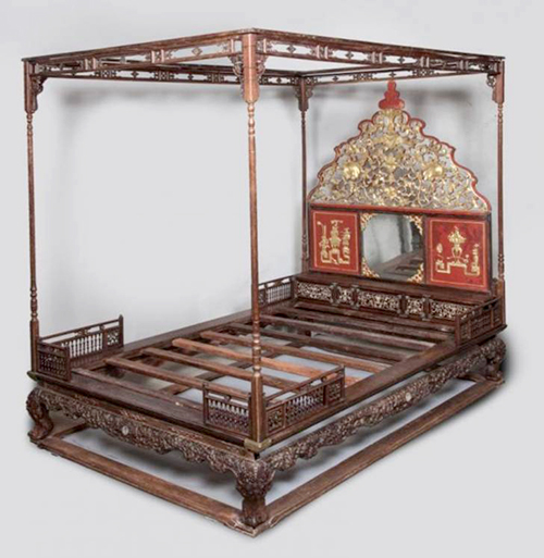 Đầu tháng 6-2014, nhà sử học Dương Trung Quốc đã báo cho Trung tâm Bảo tồn di tích cố đô Huế ngay sau khi biết tin trong số các hiện vật sắp đấu giá ở Pháp có hai hiện vật quý của triều Nguyễn: chiếc long sàng (giường của vua) và chiếc xe kéo. Trung tâm này xác định chiếc long sàng nhiều khả năng được làm khi vua Thành Thái còn là thái tử và được vua tiếp tục dùng khi ở ngôi. Riêng chiếc xe kéo làm bằng gỗ trắc khảm xà cừ, do vua Thành Thái đặt làm ở Hà Nội để tặng mẹ là thái hậu Từ Minh dạo chơi trong cung. Hai hiện vật được xem là độc bản và có giá trị rất cao cả mặt kỹ thuật, mỹ thuật lẫn văn hóa lịch sử, hiện đang nằm ở Pháp.