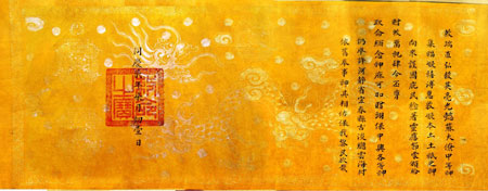 Các đạo sắc phong cổ này vẫn còn nguyên vẹn, có cùng kích thước (chiều dài 136cm, rộng 53cm) và trang trí hoa văn giống nhau, được viết bằng chữ Hán cổ trên nền giấy gió màu vàng nghệ với nét chữ mảnh, rõ và sắc nét, mặt trước trang trí họa tiết hoa văn hình rồng, xung quanh được viền bằng các họa tiết hình vạch kẻ song song liền nhau.