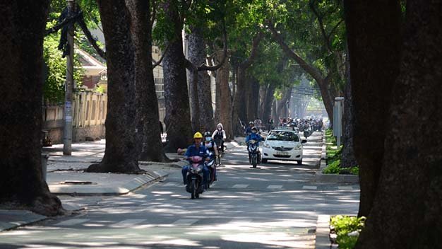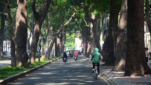 | Đường Tôn Đức Thắng được phủ mát bởi hàng cây xanh - Ảnh: Thanh Tùng |