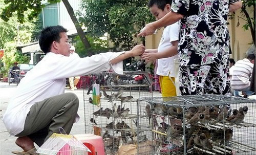 Mua bán chim phóng sinh trước cổng chùa - Ảnh internet