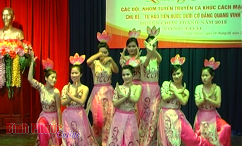Tiết mục văn nghệ của Đoàn xã Nha Bích tại liên hoan các đội, nhóm tuyên truyền ca khúc cách mạng năm 2015