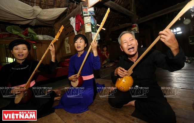 Nghệ nhân Hà Thuấn biểu diễn tiết mục 'Cung ve sầu' tại Liên hoan nghệ thuật hát Then – đàn Tính các dân tộc Tày, Nùng, Thái lần thứ 5 được tổ chức tại tỉnh Tuyên Quang.