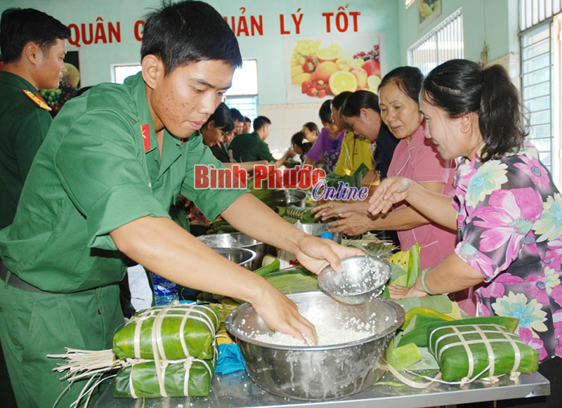Bà Phạm Thị Lan, 59 tuổi, ngụ xã Lộc Thịnh chia sẻ: “Hơn 4 năm nay, tôi đều tham gia gói bánh chưng, bánh tét tại Tiểu đoàn 208 để giúp các chiến sĩ trẻ được vui xuân đón tết ấm áp. Tôi như được trẻ lại khi thấy hình dáng chồng, con mình trong màu xanh áo lính của các cháu”.