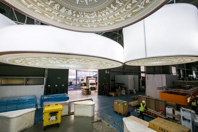 Chợt nhớ ngày xưa bố tôi bảo: "Có 2 điều con không thay đổi được là bố mẹ mình và quê hương nơi mình sinh ra. Người ta chỉ có thể nhìn quê hương con khác đi từ chính những gì con làm ra mà thôi." Ngày ấy, tôi chả hiểu gì, giờ mới thấy đúng và hiểu phần nào tại sao những kiến trúc sư thiết kế cho gian hàng Viettel lại lựa chọn một hình ảnh đậm đà bản sắc dân tộc đến thế. Đến giờ phút này, gian hàng Viettel cơ bản đã hoàn thiện tới những chi tiết cuối cùng. Do điều kiện thi công từ các gian hàng bên cạnh có thể gây bụi bẩn, Viettel và nhà thầu quyết định chưa tháo bạt phủ.